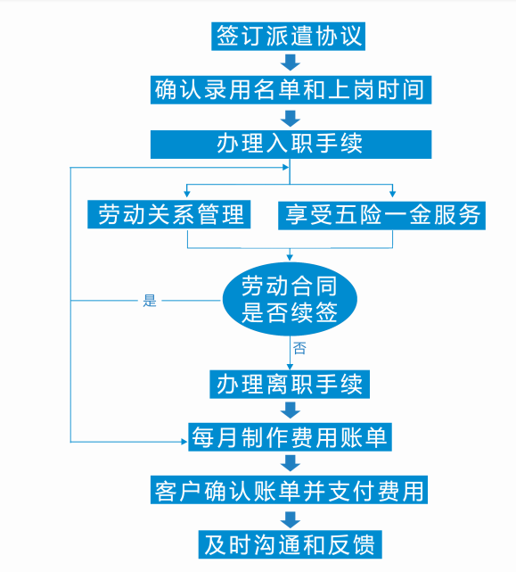 用人單位自行招募、選拔、培訓人員,再由我公司與員工簽訂勞動合同,并由我公司負責員工的工資發(fā)放、社保辦理、勞動爭議與工傷事故處理等事務(wù)。